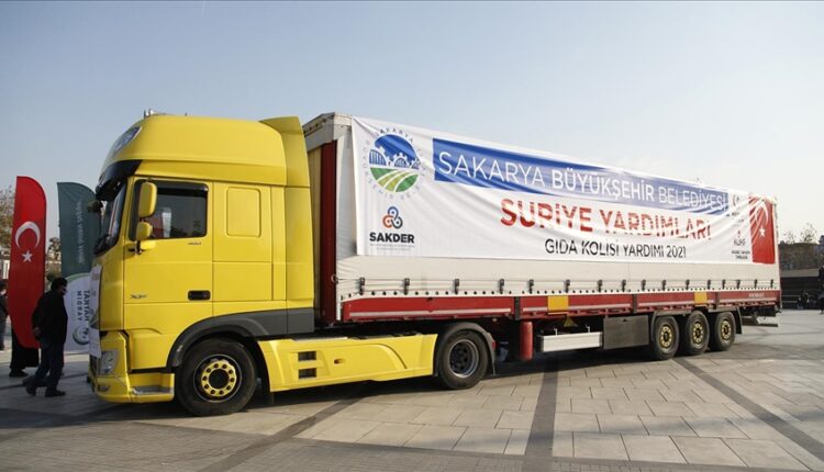 غادرت اليوم الاثنين 11 شاحنة محملة بالمساعدات الغذائية من صقاريا شمال غربي تركيا. متوجهة إلى محافظة إدلب السورية، لتوزيعها على المحتاجين.