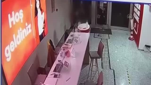 أقدم مجهول على كسر زجاج بحجر وسرقة 4 أجهزة كمبيوتر لوحية من بنك في منطقة في كاراباغلار بمدينة إزمير غرب تركيا .