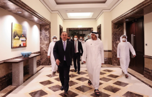 ونوه إلى أنه أجرى لقاء وصفه بالمثمر مع ولي عهد أبو ظبي أمس، وقال إنهما بحثا العلاقات الثنائية والقضايا الإقليمية مثل ليبيا والاتفاق النووي الإيراني.