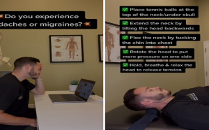 كشف دكتور العظام الكندي الدكتور بريندون تالبوت عن أسهل طريقة للتخلص من تقلصات الرقبة الناتجة عن الجلوس الخاطئ لفترة طويلة أثناء العمل.