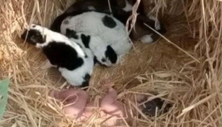 أحد السكان المحليين قال: “ربما يكون الدفء من الجراء وأمهم نفسها هي التي أبقت هذا المولودة على قيد الحياة”