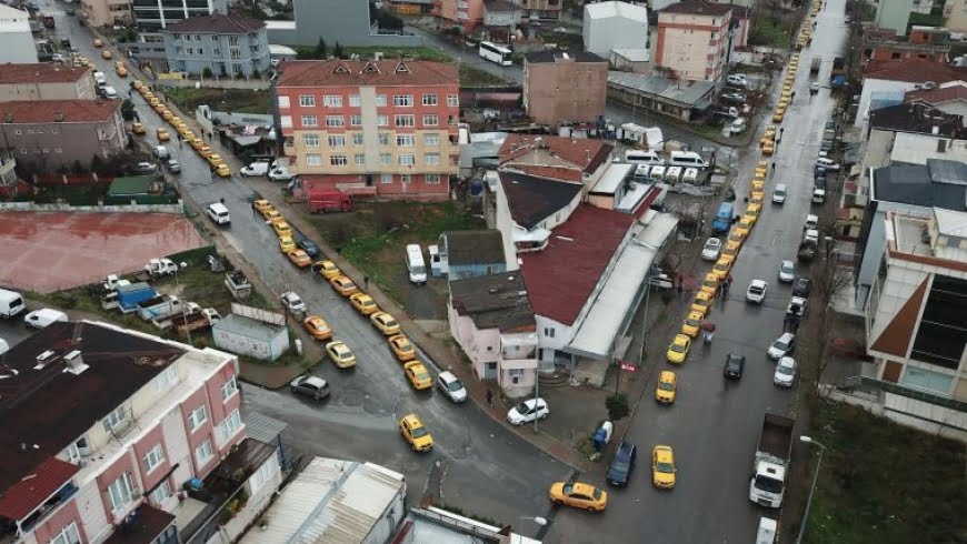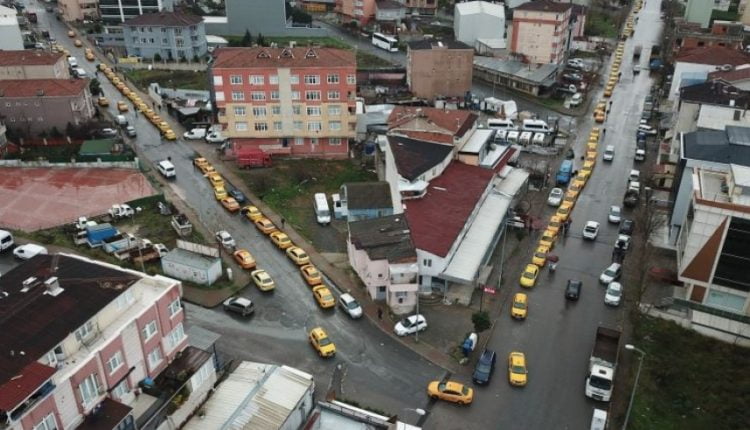 تداول رواد موقع التواصل تويتر مقطع فيديو يوثق اصطفاف سيارات الأجرة في مدينة إسطنبول من أجل تحديث العدادات بالتعريفة الجديدة.