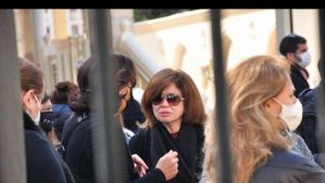 تظهر الفنانة إلهام شاهين في الصفوف الأمامية رفقة عائلة الفقيدة وهي راكعة بدون طرحة تغطي شعرها، لكن فيديو آخر متداول لنفس اللحظة يوضح محاولتها شد غطاء الرأس ووضعه بعد رفعها من الركوع، وفيما اتهم نشطاء متداولي الصور بالباطل والتلفيق مستدلين على ذلك بشريط الفيديو، فقد اعتبر آخرون الأمر غير جائز طالما ظهر شعرها وأنه كان عليها وضع الحجاب قبل الالتحاق بالجنازة.
