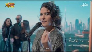 وسخرت الفنانة، من التطبيع قائلة في أغنيتها التي أدتها معظمها باللغة العربية وبثت على قناة “كان” الإسرائيلية:”في بآخر النفق ضيّ .. لو كل العرب زي دبي.. بحبوا (عم يسرائيل حي).. ما رح يرمونا بالميّ.. مفيش أحلى من عرب معهم ملايين.. ونسيوا شعب انتكب.. نسيوا فلسطين”.