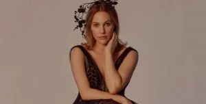 وظهرت مريم أوزرلي في الصور ترتدي ببدلة كلاسيكية باللون البيج، مستلقية على كنبة من الجلد، مستعرضة مفاتنها ورشاقتها بلقطات خطفت أنظار الكثيرين .