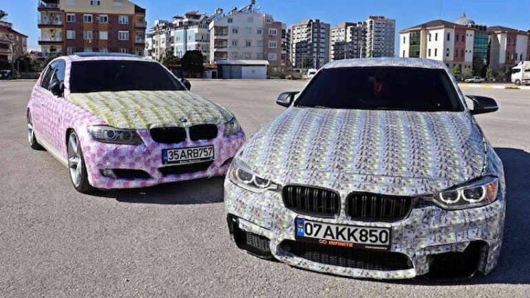وقالت وسائل إعلام محلية، أن مجموعة من الشبان الأتراك قاموا بتغطية سياراتهم بـ4500 ورقة نقدية من فئة الـ100 دولار .