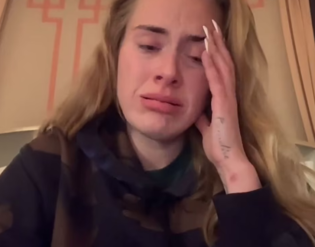 وظهرت أديل باكية في فيديو عبر حسابها الشخصي على موقع التواصل الاجتماعي انستجرام وتويتر قائلة: “آسفة، لكن عرضي ليس جاهزاً”.