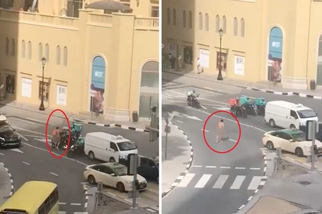 تداول رواد مواقع التواصل الاجتماعي مقطع فيديو ظهر فيه أحد الأشخاص وهو عاري تماما ويعتدي على سائق توصيل وحارس أمن في شارع عام بمنطقة دبي مارينا.