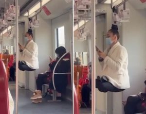 وفي التفاصيل فإن الفتاة بهلوانية روسية تدعى دارينا، وتم التقاط الفيديو داخل أحد قطارات شانغهاي في الصين.