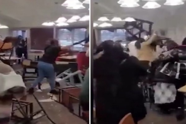 انضم أكثر من 40 شخصًا إلى القتال وشوهدت الكراسي تتطاير في الهواء، بينما كان الموظفون والزبائن خائفين مما كان يحدث.