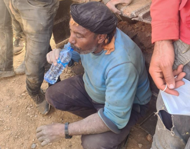 أظهرت الصورة لحظة انتهاء الخبير من عملية الحفر، وظهر وهو يشرب الماء، بعد عملية حفر دامت لمدة لا تقل عن 20 ساعة.