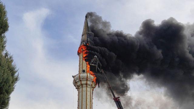 تركيا .. احتراق مئذنة مسجد في بيلجيك