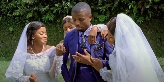 تزوج عريس يدعى لويزو من 3 شقيقات توائم في نفس اليوم في جمهورية الكونغو الديمقراطية جنوب الصحراء الأفريقية .
