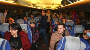 وأشارت إلى أنه تم نقل النساء الأوكرانيات وأطفالهن في حافلات معدة لهن من “مطار عدنان مندريس” إلى “كوش أداسي”.