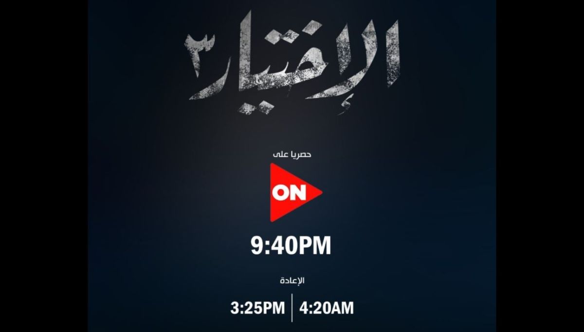 وقالت قناة ON E، أنها ستبدأ بث وعرض أولى حلقات الجزء الثالث من من مسلسل “الاختيار” اليوم السبت في العاشرة إلا عشر دقائق .