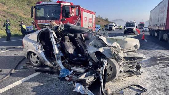 وقالت وسائل إعلام، أن سيارة كانت تسير في اتجاه أنقرة على طريق على طريق مرمرة السريع اصطدمت بشاحنة ضخمة من الخلف عند منطقة تشكماكوي رشادية .