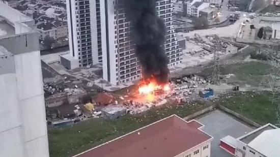 اندلع حريق ضخم في موقع لإعادة تدوير وجمع النفايات في منطقة إسنيورت بمدينة إسطنبول شمال غرب تركيا .