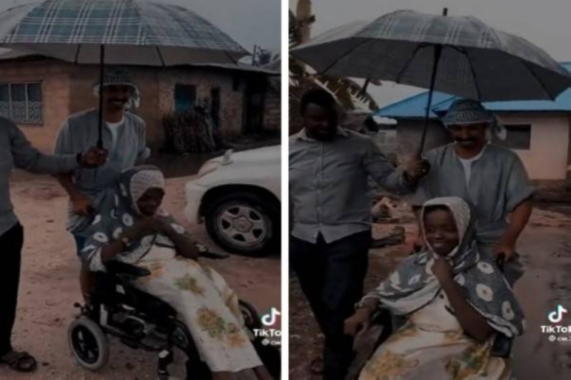 ظهر في الفيديو، فرحة الفتاة بخروجها لأول مرة منذ 20 عاماً، حيث كانت تجلس على كرسي متحرك.