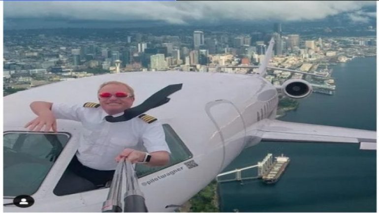ويظهر في الصور الطيار مايك فاغنر هو يخرج رأسه من نافذة الطائرة ويلتقط صورة سليفي ليثبت لزوجته أنه في العمل .