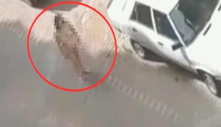 ووقفت المرأة بلا حراك في منتصف الشارع لفترة، ثم ابتعدت المرأة فيما قيل إنها مختلة عقليا .