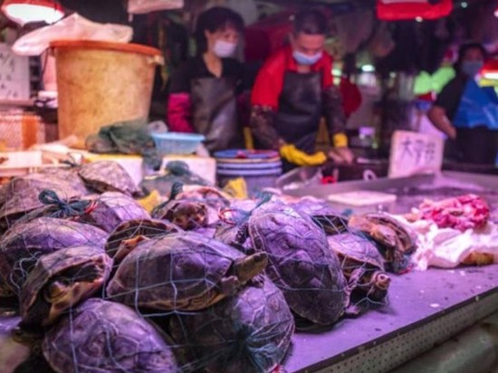 وقالت أنه تم العثور على البكتيريا التي تسببت بإصابة طالب بالكوليرا في عينات من سلاحف رخوة في سوق للمأكولات البحرية بووهان .