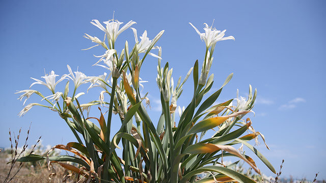 تعطي أزهار “الطيطان البحري” المهددة بالانقراض والمعروفة أيضًا بـ”الزنبق الرملي”، جمالًا أخاذًا على شواطئ ولاية “صقاريا” شمال غربي تركيا.