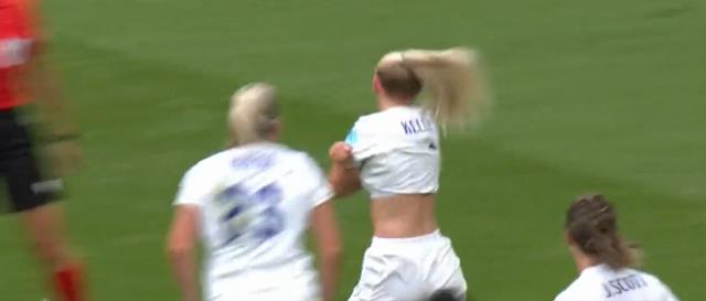 خلعت لاعبة كرة القدم البريطانية تشول كيلي، قميصها بعد تسجيلها الهدف الثاني والفوز على الفريق الألماني في كأس أوروبا للسيدات .