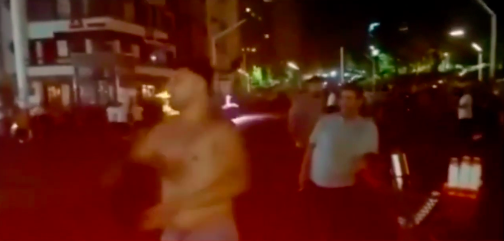 نشرت وسائل إعلام، السبت، مقطع فيديو لمواطن تركي يقتحم حشد من السوريين في شارع تقسيم .