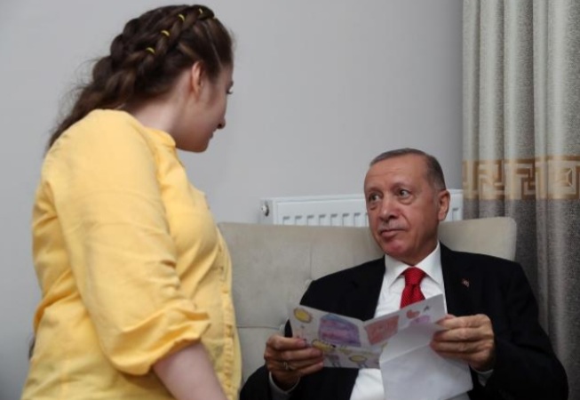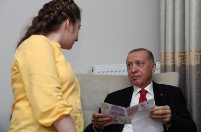 وأقدمت ابنة صاحب المنزل الذي استلمه حديثًا بموجب مشروع مقاومة الزلازل في إسطنبول رسالة فيها قصيدة للرئي أردوغان تخللها عبارات “أنت صغير” .