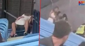 ولفت المشجعين شخصين يمارسان الجنس في الزاوية في الطابق العلوي من الملعب ما دفعهم لإبلاغ حراس الملاعب .