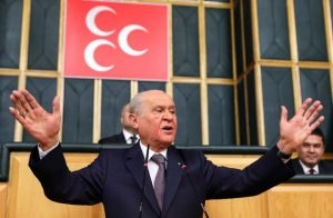 وشارك حزب الحركة القومية صور بهتشلي على حساباته عبر مزاقع التواصل الاجتماعي مع عبارة “قائدنا على الطريق” .