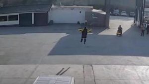 وإلتقط زملاء كسكين صور وفيديوهات لها أثناء هبوطه في ساحة المصنع وهم في حالة من الذهول .