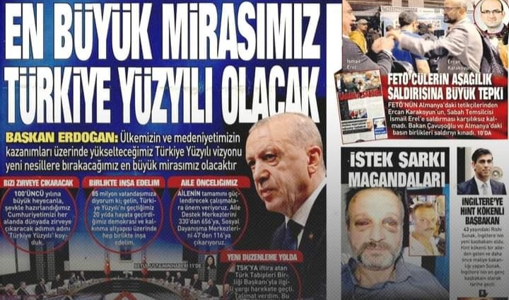 جريدة صباح: أردوغان قال إن “قرن تركيا سيكون أكبر ما سنورثه للأجيال من بعدنا”