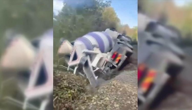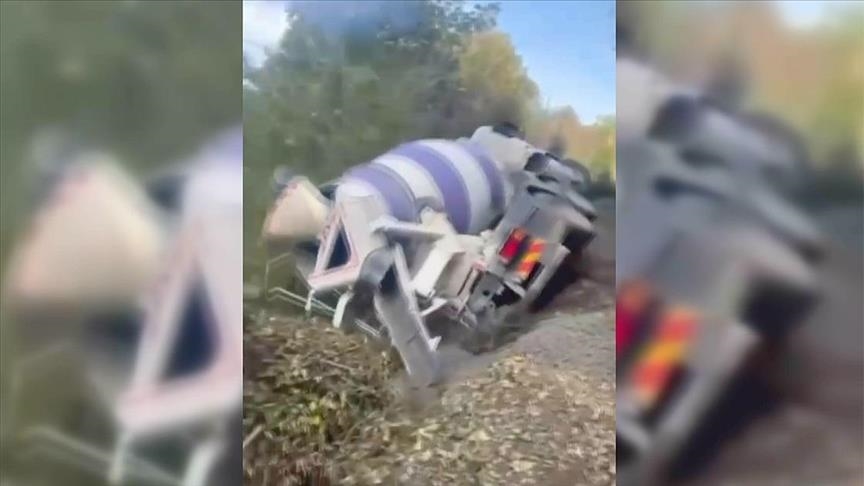 سجل أحد المواطنين الأتراك لحظة سقوط خلاطة خرسانة في وادٍ بولاية أوردو شمالي تركيا.