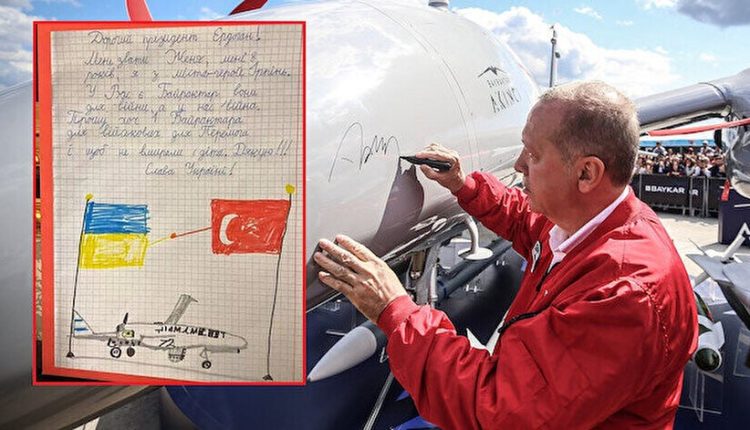 وكتبت الطفلة في الرسالة المرفقة بأعلام تركيا وأوكرانيا ومسيرة بيرقدار ” السيد الرئيس أردوغان اسمي جيتا من مدينة إيربين الأبية، أنتم تماكون بيرقدار المصنوعة لأجل استخدامها في الحرب، أن أطلب منكم بيرقدار واحدة على الأقل كي لا يموت الأطفال” .