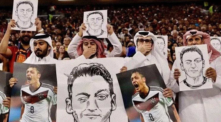 وقام الجماهير القطرية برفع صورة أوزيل وإغلاق أفواههم والتجول وسط الجماهير الألمانية وهم يحملون صورًا لمسعود أوزيل في الملعب الذي أقيمت فيه المباراة .