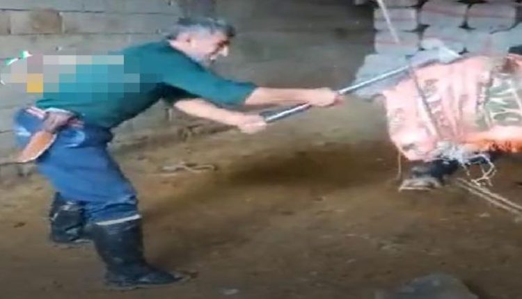 وقالت أن جزار قام بضرب بقرة على رأسه مرارا وتكرارا بوسطة مطرقة بعد فشله بذبحها بعد أن عصب عينيها .