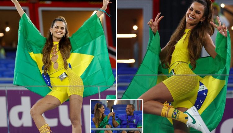 وظهرت إيزابيل جولارت مبتهجة بين المدرجات في فستان بفتحات باللون الأصفر الكناري تهتف لمنتخب البرازيل .