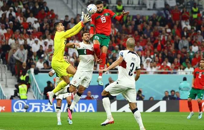 الهدف الأول في مباراة المغرب ضد البرتغال جاء عن طريق رأسية يوسف النصيري، بعد عرضية رائعة من يحيى عطية الله، تابعها يوسف النصيري برأسية قوية سكنت الشباك، مُعلنا تقدم المغرب بهدف دون رد أمام البرتغال.