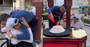 كما وظهر في الفيديو الشيف التركي يحضر وجبة طعام خاصة على الطاولة التي يجلس عليها المفتاح، حيث يشعل النار بها بعد صب الزيت وسط فرحة وتفاعل الشاب القطري .