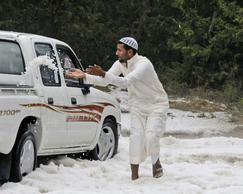 وفي الكويت تساقط البرد على مناطق في الجنوب، الثلاثاء الماضي، في ظاهرة نادرة لم تشهدها منذ نحو عقدين .