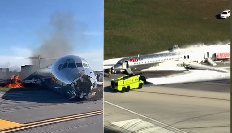 وأظهر افيديو، امتلاء الطائرة من الداخل بالدخان مما أجبر كافة الركاب وأفراد الطاقم على الخروج من الطائرة.