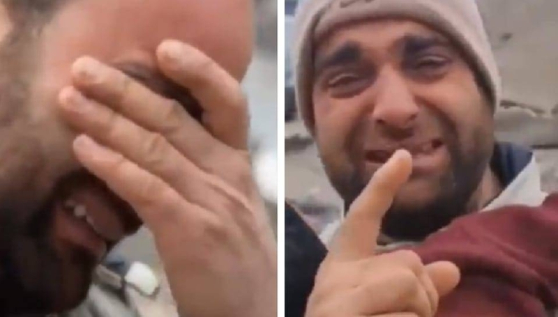 ودخل الرجل في نوبة بكاء مؤثرة وهو غير مصدق لما يحدث حوله من الركام المتناثر والعقارات المتساقطة بفعل الزلزال.