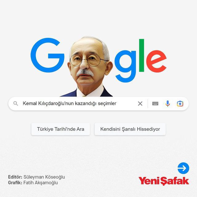 وطرحت يني شفق على مواطنين السؤال التالي :”ما هي الانتخابات التي فاز بها كمال كليتشدار أوغلو ؟” لتجيب على السؤال بنفس بتصميم آخر: “لا يوجد نتائج لسؤالك، ونقدم اقتراحات لأسئلة أخرى متعلقة بما تبحث عنه”.