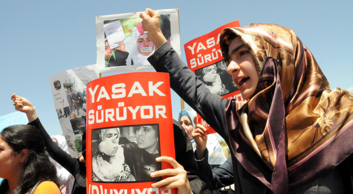 يذكر ان الحجاب كان مجظورا في تركيا وقد مرّت عملية حظره بمرحلتين فارقتين؛
