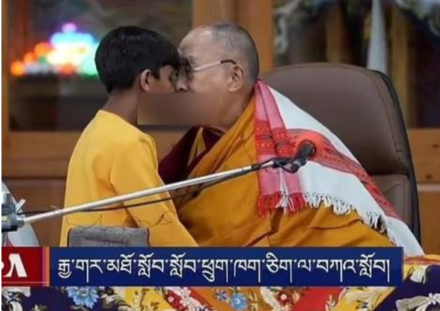 رجل دين بوذي يقبل طفل صغير من فمه ويطلب منه مص لسانه