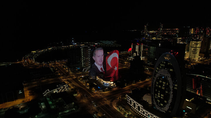 أُضيئت أبراج الجابر في منطقة لوسيل بالعاصمة القطرية الدوحة، بالعلم التركي وصورة الرئيس رجب طيب أردوغان، احتفالاً بالنتائج الأولية للانتخابات الرئاسية التي عقدت الأحد الموافق 14 مايو.