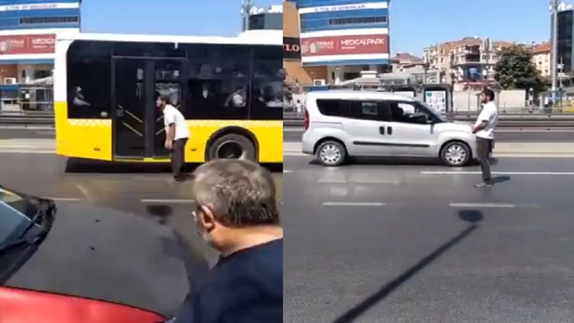 تداول رواد مواقع التواصل الاجتماعي مقطع فيديو لرجل يصلي وسط طريق عام مخصص للسيارات في منطقة أوسكودار وسط إسطنبول.