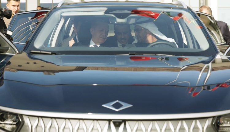 وأظهرت لقطات مصورة، نشرها حساب الرئاسة التركية ، الشيخ محمد بن زايد وأردوغان وهما يجلسان في داخل سيارة من طراز “توغ”، حيث استعرضا أول سيارة كهربائية تركية الصنع.