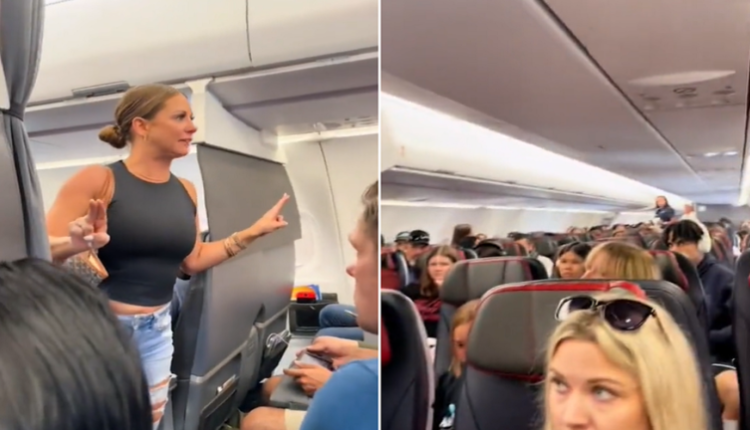 ظهرت السيدة في الفيديو المتداول على نطاق واسع وهي تحاول مغادرة طائرة “American Airlines” خلال رحلة من مطار دالاس فورت وورث إلى تكساس.